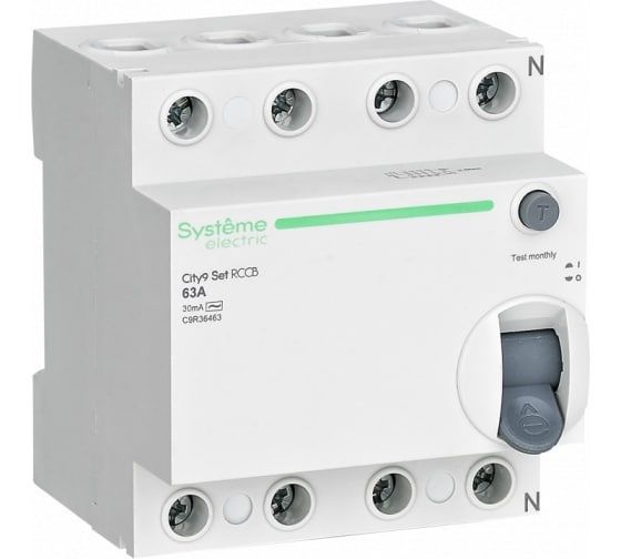 УЗО 4П 63А 30мА Тип-AC 400В City9 Set имеет четыре полюса, что позволяет обеспечить защиту каждой фазы электросети от возможных перегрузок и короткого замыкания. Номинальный ток составляет 63А, а дифференциальный ток – 30мА. Это обеспечивает надежную защиту от утечек тока, сохраняя электрическую систему в работоспособном состоянии.