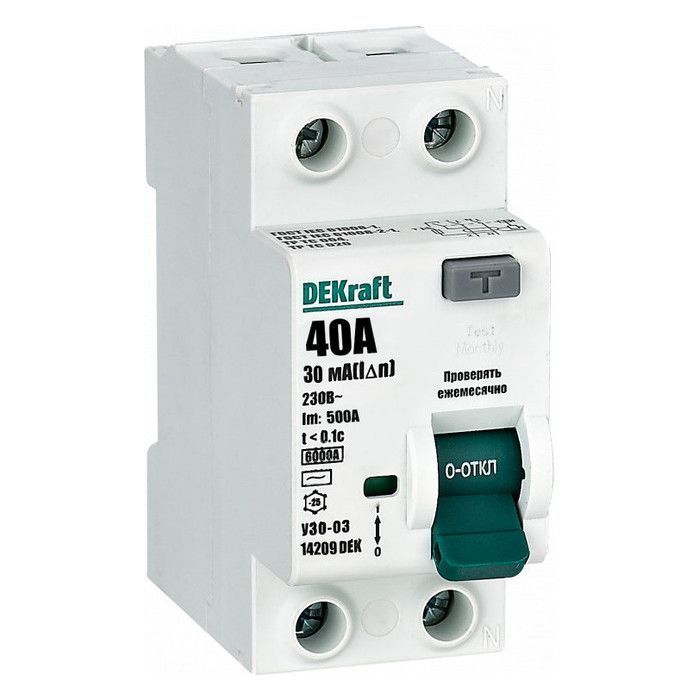 УЗО DEKraft УЗО-03 2P 40А 6 кА, 30 мА (AC), 14209DEK - это высококачественное устройство защиты от утечки тока и перегрузок в электрических цепях. Данное УЗО имеет два полюса, номинальный ток 40А и предельную коммутационную способность 6 кА. Тридцатимиллиамперный дифференциальный ток обеспечивает надежную защиту от поражения электрическим током при возникновении утечек. УЗО DEKraft подходит для использования в бытовых, коммерческих и промышленных целях, обеспечивая безопасность и надежность работы электрооборудования.
