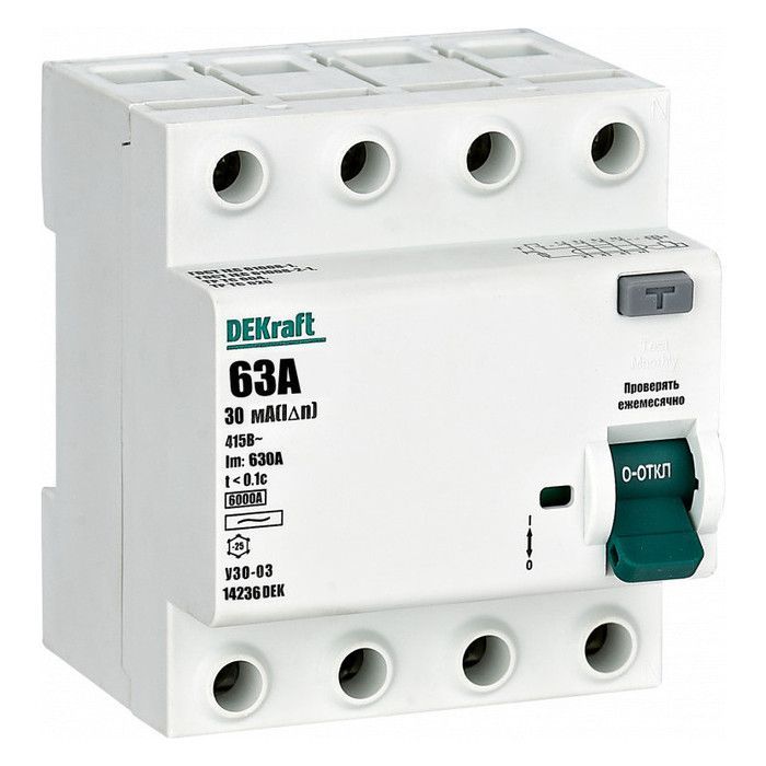 В нашем магазине «Главэлектрика» в Чебоксарах - Калининском, вы можете приобрести товар: «УЗО 4П 63А 30мА тип АC 6кА DEKrАft» с доставкой по г. Чебоксары - Калининский.